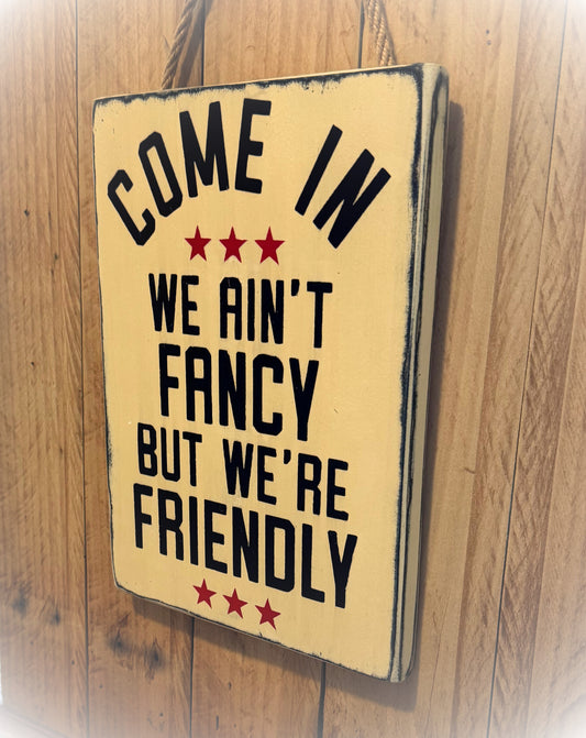 Rustic Wooden Sign - "Come In, We Ain't Fancy But We're Friendly" - Customizable Home Décor with Jute Twine - Business Welcome SignDecor - Wall Art (Copy)