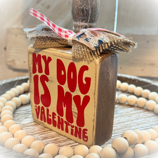 Funny Valentine's Day Tiered Tray Sign – "My Dog Is My Valentine" – Handcrafted Wooden Shelf Sitter