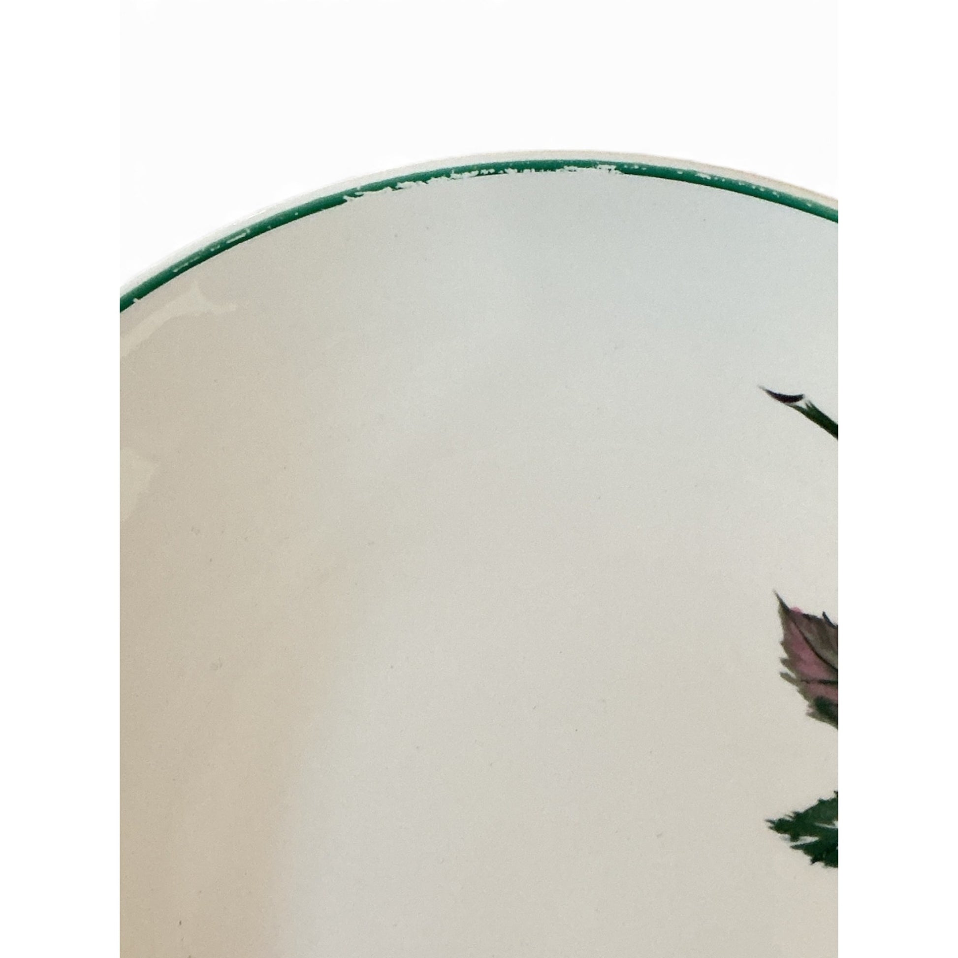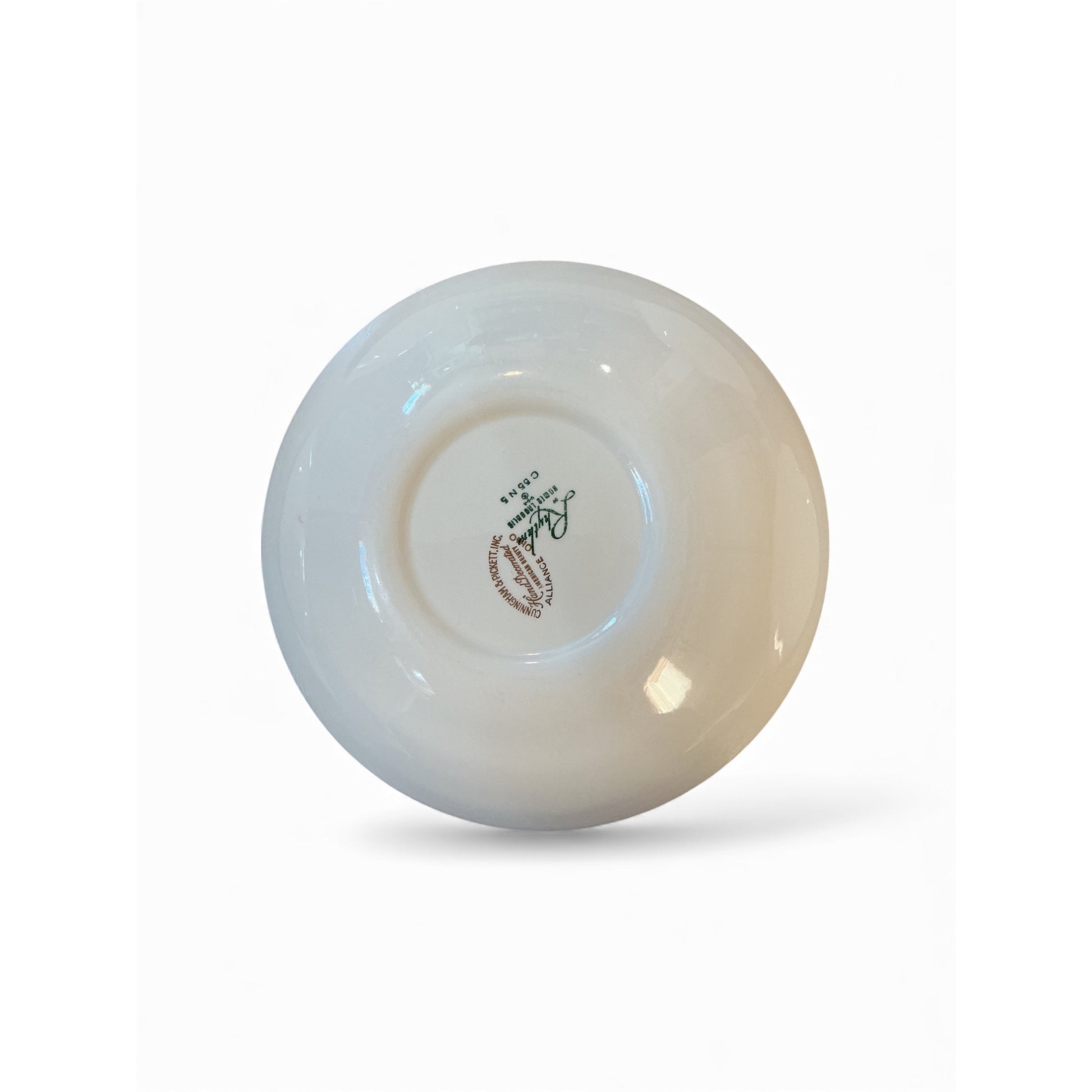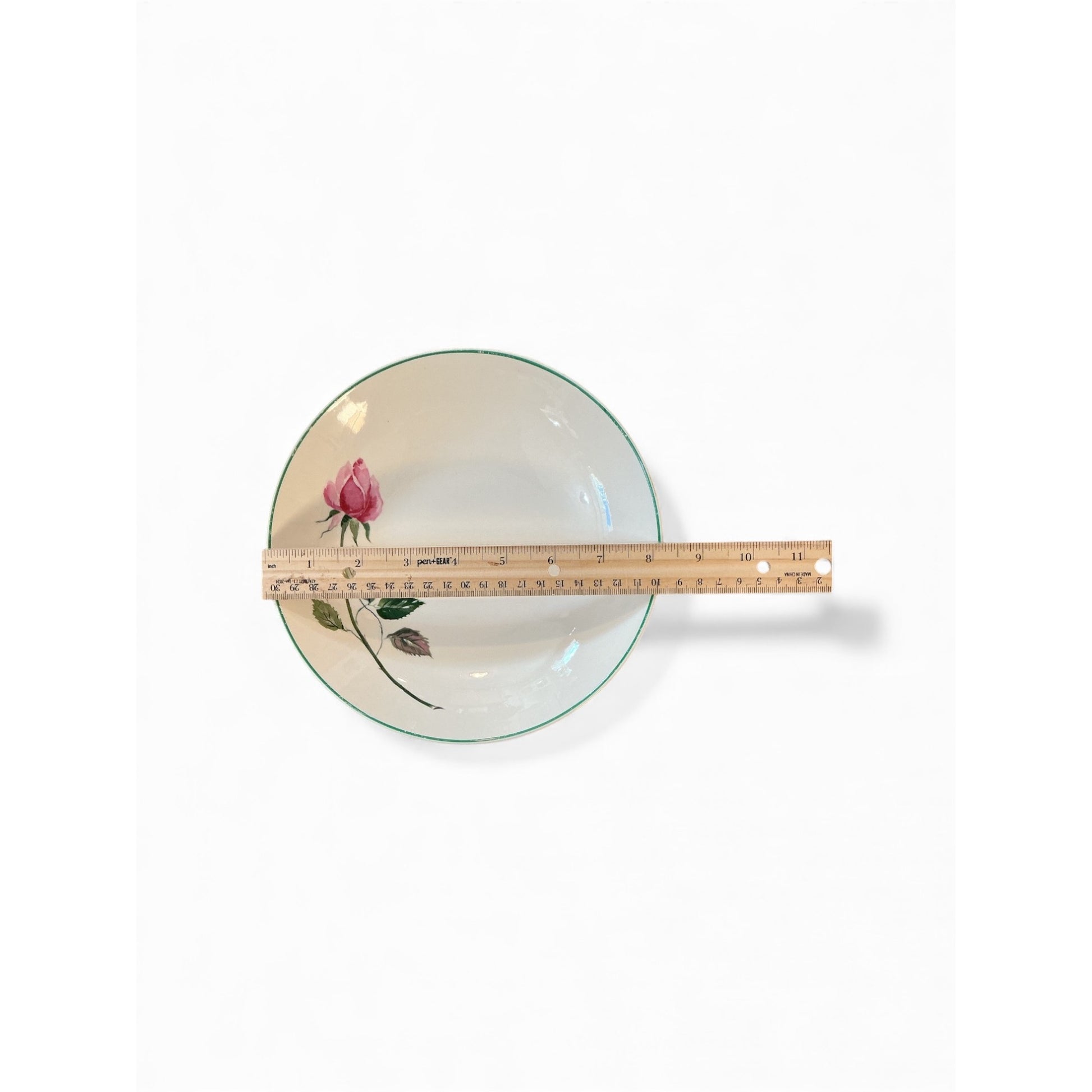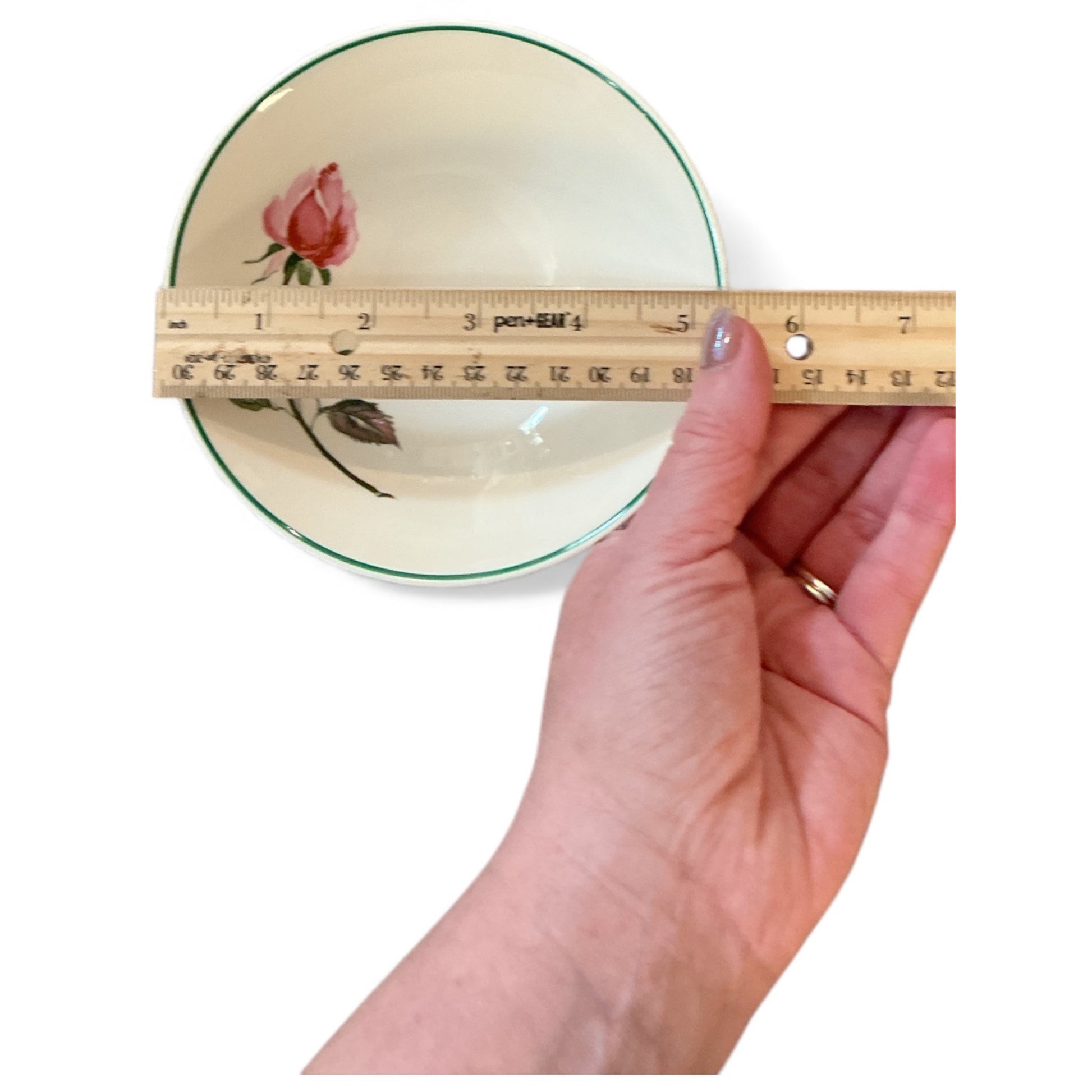 This vintage set of Cunningham & Pickett bowls features a hand-painted pink rose design with green accents. Crafted from ceramic, they offer timeless elegance for dining.