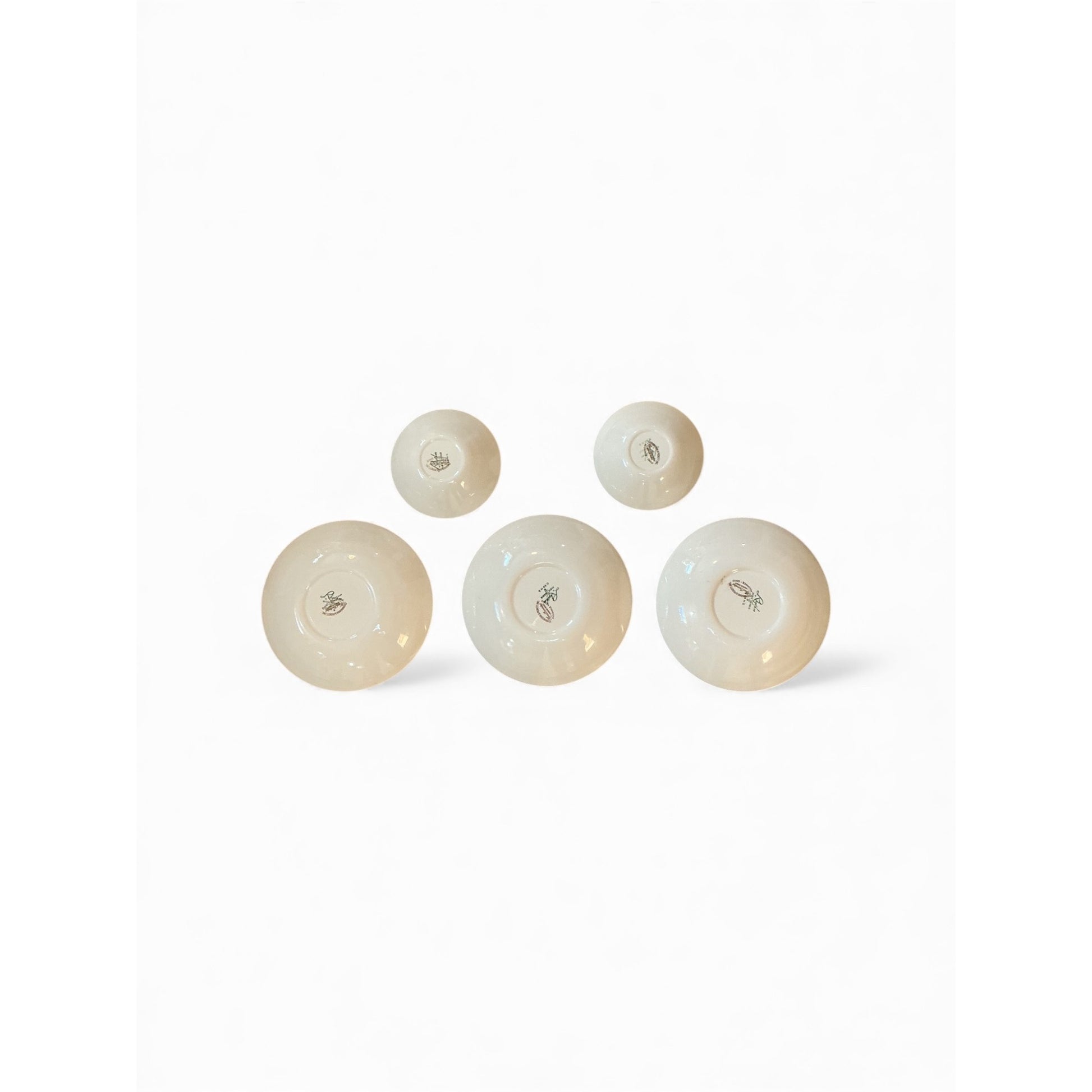 Cunningham & Pickett Rose Design Bowls Set Of 5 Hand-Painted Pink Floral Vintage Ceramic Dishware