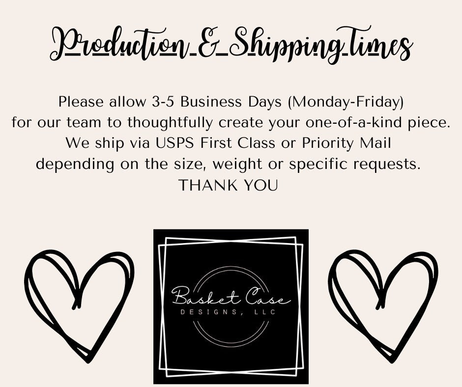 Each sign is handcrafted, painted white, and thoughtfully sanded to create a very rustic look and feel. The lettering is painted black. An adorable jute twine bow is attached to the top.