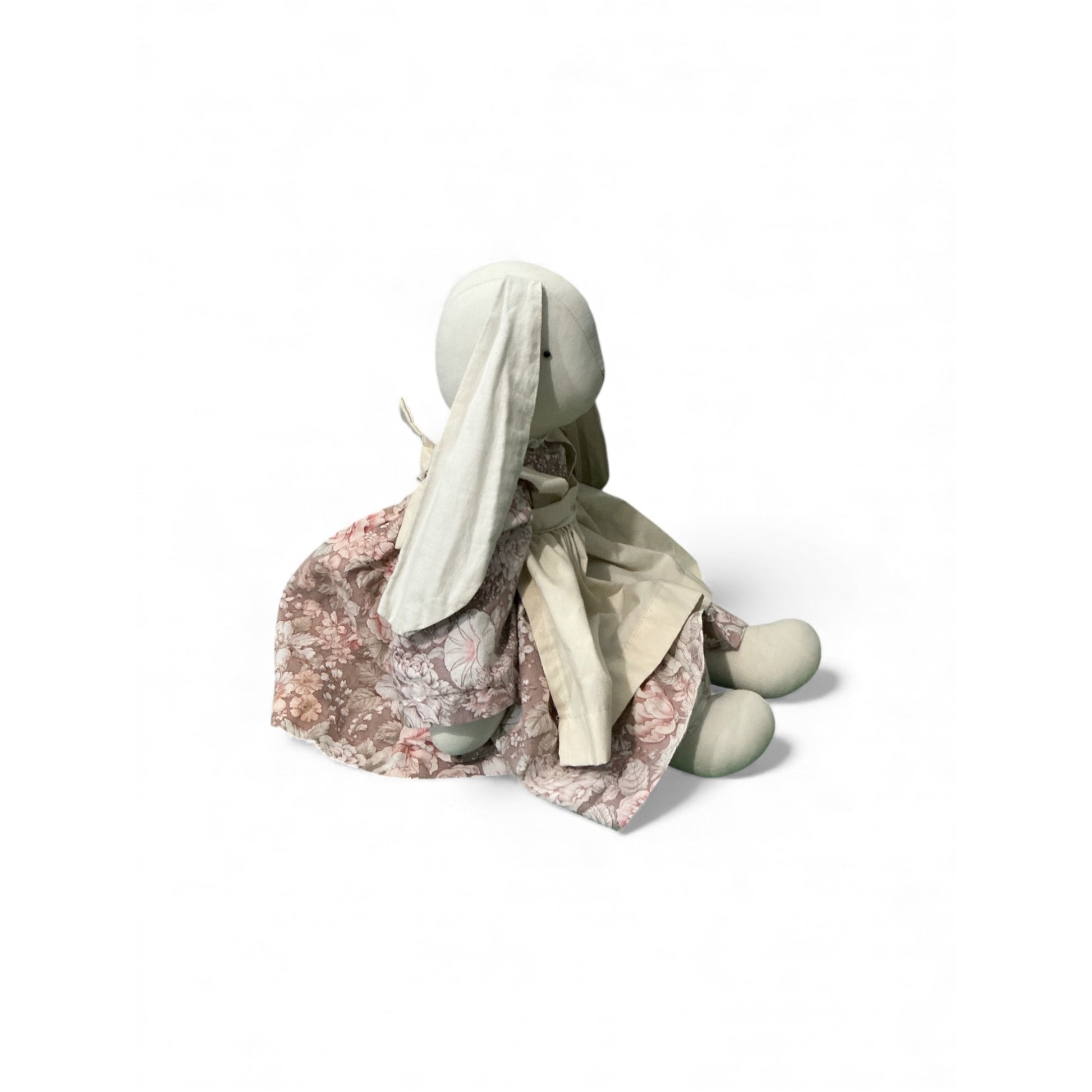 Handmade Fabric Bunny Doll With Floral Dress & Apron 21 Inches Long